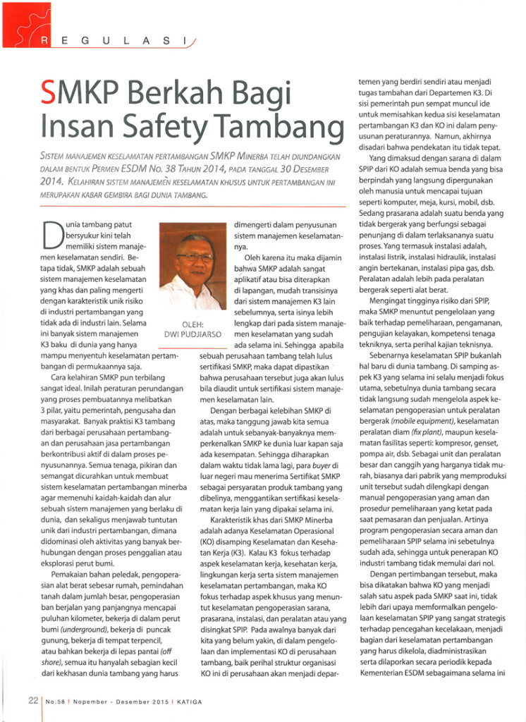 - berhasil membuat semua departemen terkait di perusahaannya aktif memainkan peran dan tanggung jawab K3 secara proporsional dan terukur.